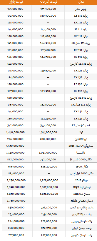 قیمت انواع محصولات سایپا (جدول)