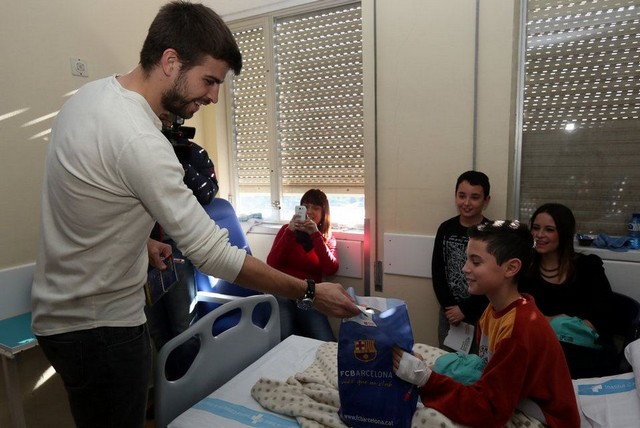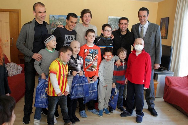 اعضای تیم فوتبال بارسلونای اسپانیا با حضور در بیمارستان های کودکان در این شهر از کودکان بیمار عیادت و به آنها هدیه هایی ارائه کردند.