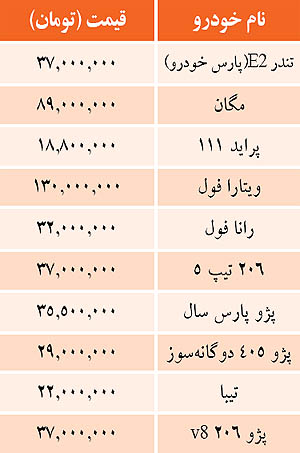 قیمت برخی خودروهای داخلی در بازار (جدول)
