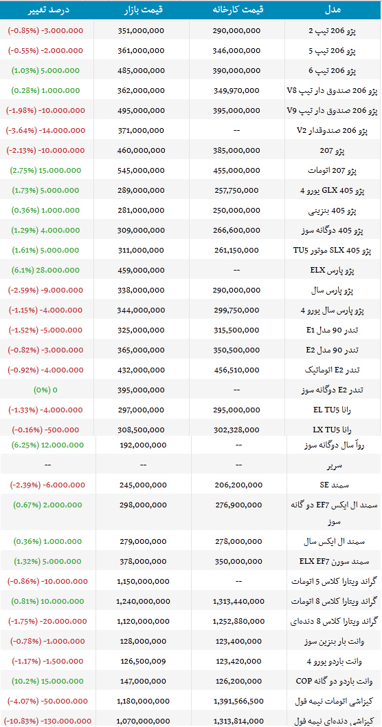 جدیدترین قیمت محصولات ایران خودرو (جدول)