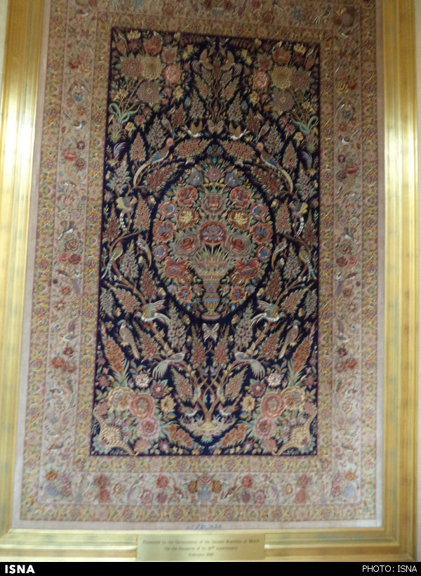 به گزارش ایسنا، این فرش که ساخت قم است، توسط جمهوری اسلامی ایران به سازمان ملل متحد هدیه داده شده است.