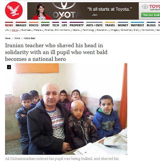 اقدام معلم مریوانی در تراشیدن سر خود برای اعلام همبستگی با دانش آموز بیمارش با بازتاب های گسترده ای در میان رسانه های خارجی روبه رو شده است.