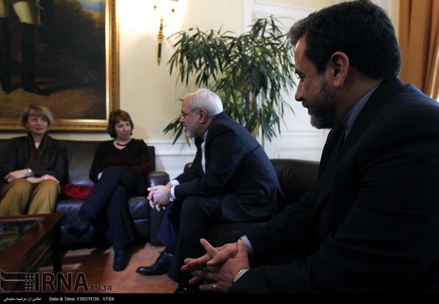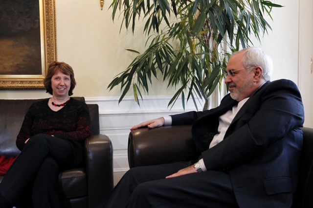 محمد جواد ظریف وزیر امور خارجه و کاترین اشتون مسوول سیاست خارجی اتحادیه اروپا در دومین روز مذاکرات ایران و 1+5 در وین اتریش با یکدیگر دیدار و گفت و گو کردند.