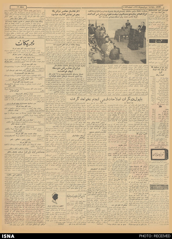 به گزارش ایسنا، در یکی از ستون‌های سمت راست صفحه‌ی 19 شماره‌ی یادشده از روزنامه‌ی «اطلاعات» ستونی با تیتر «بهای ارز و مسکوک طلا در بازار آزاد تهران» به اعلام آخرین قیمت دلار آمریکا، پوند انگلیس‌، مارک آلمان‌، فرانک سوییس‌، لیر ایتالیا،‌ لیره ترک‌، روپیه پاکستان‌ و سکه‌های پهلوی‌،‌ نیم پهلوی‌، ربع پهلوی‌ و ... پرداخته است.