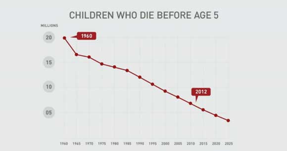 بیل گیتس و ملیندا گیتس، زمانی ثروت خود را می‌بخشند که به کسب اعتبار و برند نیاز ندارند و به کسانی می‌بخشند که به محصولات مایکروسافت نیاز ندارند. بیل گیتس به جای نمودار رشد مایکروسافت (که منطقاً گزارش سالهای آخر عمر یک کارآفرین است)، نموداری را نشان می‌دهد که کاهش مرگ کودکان زیر ۵ سال را نشان می‌دهد و از رویای خود برای کوچک‌تر کردن آمار این مرگ می‌گوید. مرگهایی که به قول او در ۹۸٪ مواقع ناشی از بلایای طبیعی نیستند. اما تصویر آنها به اندازه‌ی یک زلزله دردناک و خبرساز نیست تا در رسانه‌ها بیاید.