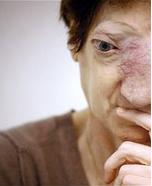 این زن به بیماری "esthesioneuroblastoma" یا اصطلاحا ENB دچار است.وی در سال 2000 به این بیماری مبتلا شد و حس بویایی و چشایی خود را از دست داد. توموری که از صورت این زن در آمده است بعدا تا چشمانش رسید و وی در ماههای گذشته بینایی چشمانش را هم از دست داد.