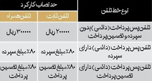 حد نصاب کارکرد تلفن ثابت و همراه به شرح جدول زیر است: