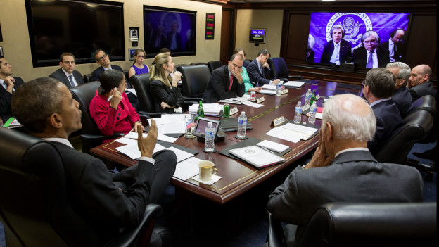 جان کری از طریق ویدئو کنفرانس با اوباما صحبت کرد.