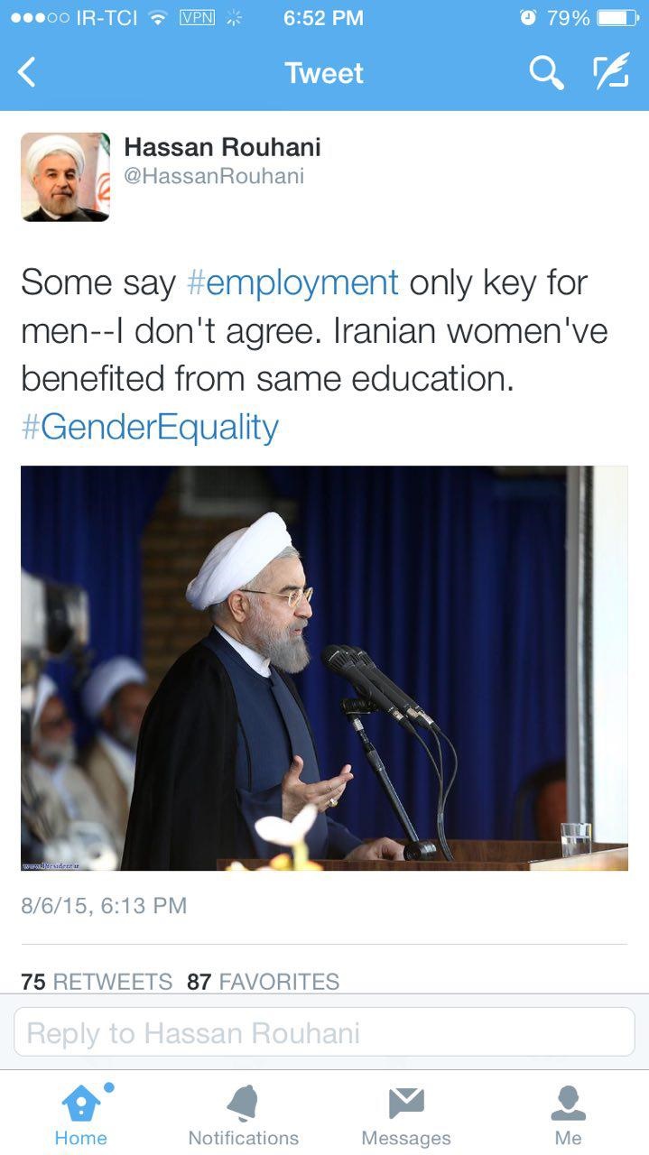 خبر آنلاین - حسن روحانی رئیس جمهور که در جمع مردم اسلامشهر گفته بود، چرا برخی فکر می کنند فقط پسران به کار نیاز دارند، همین جمله را با تاکید بر تحصیلات برابر دختران و پسران در جدیدترین توئیتش منتشر کرد.