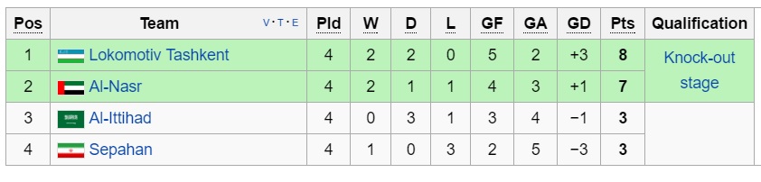 سپاهان شاید برای صعود به مرحله بعد بتواند به یک پیروزی رفت و برگشت مقابل الاتحاد برسد اما بعید است النصر در دوبازی فقط یک امتیاز بگیرد. چون لوکوموتیو با اولین  3 امتیاز شانس صعودش به عنوان تیم اول قطعی خواهد شد.