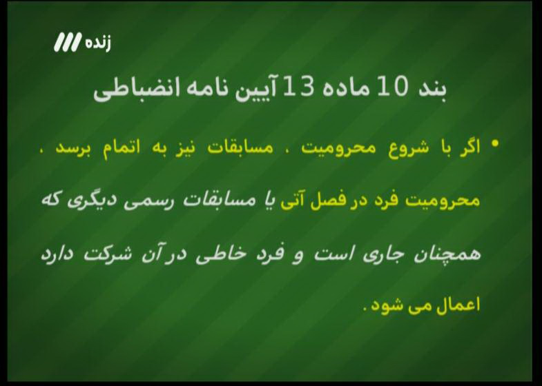 آقای رحمتی قطعا باید در بازی فینال جام حذفی محروم می شد و گاهی تصمیم های ما می تواند حق مردم یک شهر را تضییع کند و خواهش می کنم دوستان در تصمیم گیری هایشان به این موارد توجه کنند»