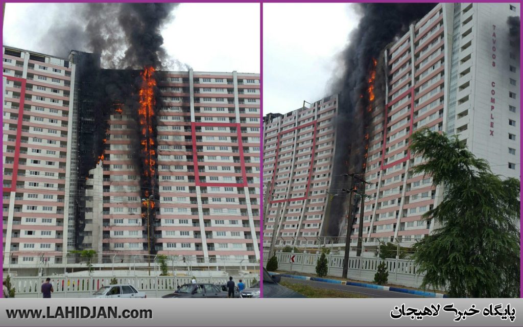 آتش سوزی در بلندترین برج گیلان (+عکس)