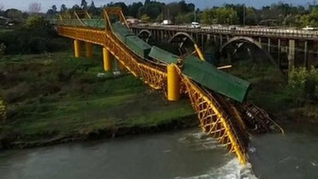 شکسته شدن پل خط آهن در جنوب شیلی، 6 واگن قطار باری در رودخانه "تولتن" سقوط کرد.