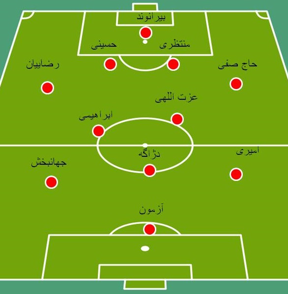 علیرضا بیرانوند، احسان حاجصفی، امید ابراهیمی، سردار آزمون، پژمان منتظری، علیرضا جهانبخش، سیدجلال حسینی، سعید عزتاللهی، اشکان دژاگه، وحید امیری و رامین رضاییان