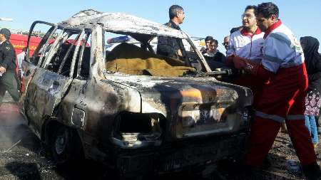 تصادف پراید و وانت نیسان در محور فسا به داراب در استان فارس موجب شد چهار نفر از سرنشینان خودرو زنده زنده در آتش بسوزند.