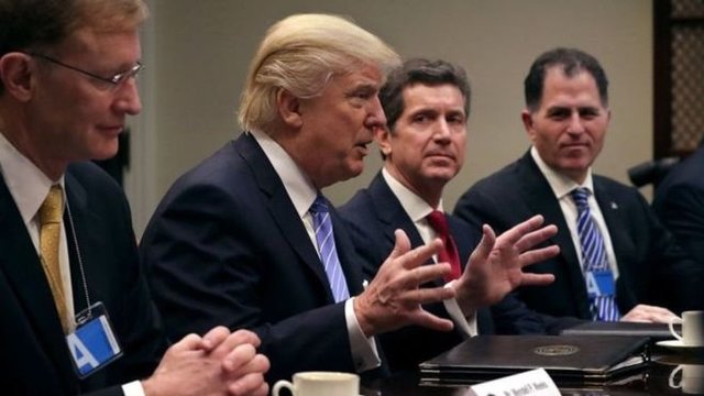 او صبح روز دوشنبه و پیش از امضای فرمان اجرایی در جلسهای با حضور صاحبان تجارت همچنین وعده داد تا نرخ مالیات و مقررات تجاری برای شرکتهایی که به "حفظ مشاغل" در آمریکا کمک کردهاند را به میزان قابل توجهی کاهش دهد.