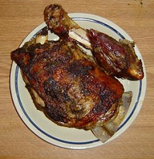 از شب قبل ران بوقلمون را شسته و توسط چاقو برش های عمیق و کوچک در آن ایجاد کنید. داخل هر یک از این برش ها یک حبه سیر و 2 تا 3 عدد فلفل دلمه  و برگ بوها را روی آنها قرار دهید، سپس آن را در یخچال به مدت 12 ساعت بگذارید.