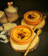 و بعد داخل سینی فر کمی آب می ریزیم و کاسه ها را پر کرده و می چینیم داخل آن و بعد با دمای 180 درجه به مدت بیست دقیقه گذاشتم و بعد گریل را روشن کردم تا روی آن طلایی تیره شود و اگز دوست داشتید روی آن را با پودر مغزهای دلخواه تزئین کنید.