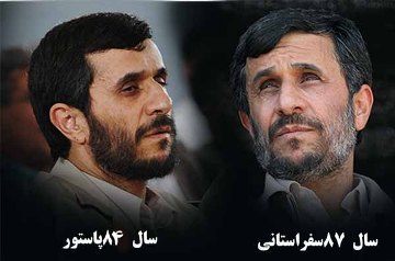 در حاشیه دومین سفر استانی هیات دولت به استان مازندران، پوستری که در آن دو عکس از دکتر احمدی نژاد در سالهای 84 و 87 در کنار هم به چاپ رسیده بود در بین حضار پخش شد.