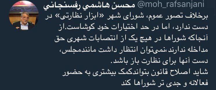 محسن هاشمی: شورای شهر ابزار نظارتی در دست ندارد