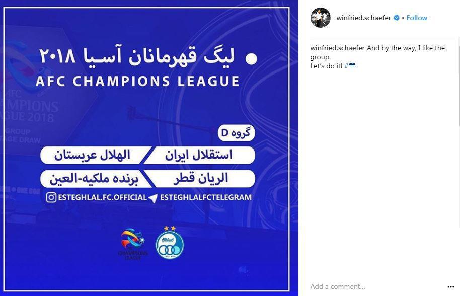 شفر سرمربی تیم استقلال در واکنش به هم گروه شدن استقلال با الهلال، العین و الریان در اینستاگرامش نوشت: به هر حال من این گروه را دوست دارم