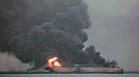 بر اساس این گزارش در تاریخ شانزدهم دی ماه نفتکش ایرانی سانچی با کشتی فله بر چینی برخورد کرد که با عث حریق و مفقود شدن ۳۲ پرسنل این نفتکش شد. سانچی بعد از یک هفته آتش سوزی در نهایت غرق شد و تنها پیکر سه نفر از مفقودان پیدا شده است.