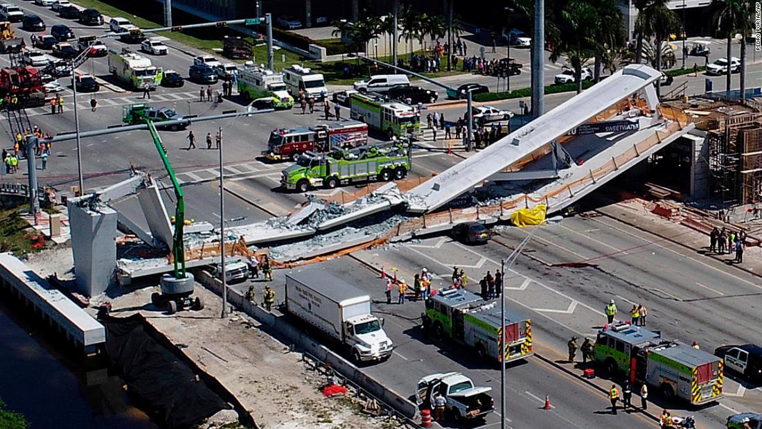 سقوط یک پل عابر پیاده در میامی آمریکا دستکم چهار کشته برجای گذاشت.