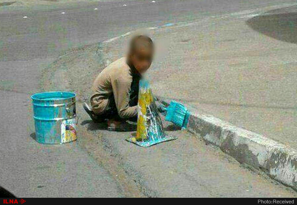 به گزارش ایلنا، در روزهای گذشته تصویری در فضای مجازی منتشر شد که در آنها یک کودک کار مشغول رنگآمیزی جداول خیابانها در یزد است.