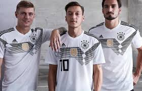 بازیکنان تیم آلمان با لباس آدیداس به جام جهانی میروند. این پیراهن از تکنولوژی climate برخوردار است و مواد ترکیبی پلیاستر دارد. تکنولوژی climate باعث میشود این پیراهن به راحتی عرق را جذب کند و فرد در آن احساس راحتی داشته باشد. پیراهن تیم آلمان ۵۱ درصد پلیاستر و ۴۹ درصد پلیاستر بازیافتی دارد. بر روی این لباس آرم طلایی قهرمانی FIFA که نشان میدهد این تیم در دوره قبل قهرمان شده وجود دارد. همچنین آرم فدراسیون فوتبال این کشور با ۴ ستاره که نشان دهنده ۴ قهرمانی آلمان در جام جهانی است به چشم میخورد. قیمت پیراهن تیم فوتبال آلمان ۹۰ دلار است.