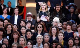 هشتاد و دو نفر از سینماگران زن در حرکتی اعتراضی به حضور کمرنگ زنان در هفتادویکمین دوره جشنواره کن روی فرش قرمز رفتند.