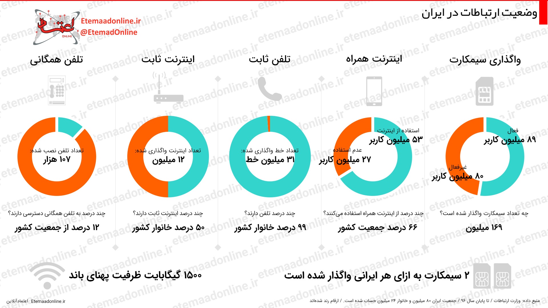 آمار استفاده از تلفن و اینترنت در ایران