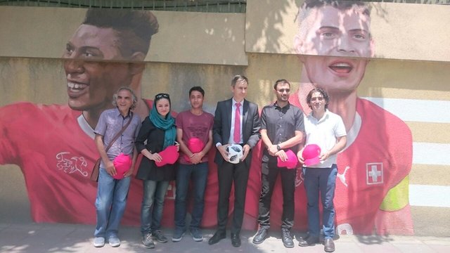 سفیر سوئیس در تهران در مراسم رونمایی از تصاویر نقاشی شده دو تن از بازیکنان تیم ملی این کشور بر دیوار سفارت گفت: تیم ملی سوئیس قبلا با تیم پرتغال بازی انجام داد شاید بتواند در این مورد توصیه‌هایی را به تیم ایران داشته باشد.