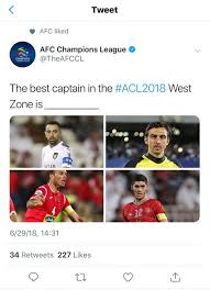 AFC برای انتخاب بهترین کاپیتان باشگاه‌های حاضر در مرحله یک چهارم نهایی لیگ قهرمانان آسیا در منطقه غرب، اقدام به رای‌گیری کرد.