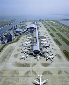 با ورود به عرشه پل ارتباطي اين فرودگاه و پرداخت عوارض 17 دلاري آن در واقع شما بليت ورود به يک نمايشگاه دائمي فناوري را به جاي قبض عوارض دريافت مي کنيد. پلي به طول 5/2 کيلومتر با شش مسير مخصوص عبور خودرو و يک مسير ويژه قطار مسافربري، اين فرودگاه را که در واقع يک جزيره 504 هکتاري است، به شهر ساحلي «کوبه» ژاپن وصل مي کند. البته اين پل تنها مسير دسترسي به فرودگاه بين المللي کانساي نيست و مسافران به وسيله کشتي هاي تندرو از کوبه (نزديک ترين شهر ساحلي ژاپن) در مدت زمان کمتر از 30 دقيقه و از دورترين شهر ساحلي ژاپن يعني «تاکوشيما» در مدت زمان 80 دقيقه به اين فرودگاه (که روزانه بيش از يکصد هزار مسافر را جابه جا مي کند) دسترسي پيدا مي کنند. عمليات اجرايي اين فرودگاه که طرح آن در سال 1987 به وسيله «رنزو پيانو» معمار برجسته ايتاليايي ارائه شد، در سال 1995 با تلاش بيش از شش هزار نفر به اتمام رسيد و به وسيله امپراتور ژاپن افتتاح شد و تاکنون مجهز به امکانات پيشرفته يي شده است که نمونه آن در هيچ فرودگاه ديگري در جهان وجود ندارد. پس از عبور از پل ورودي به فرودگاه به طول 5/3 کيلومتر (که بزرگ ترين پل آبي در جهان هم محسوب مي شود) به فرودگاهي مي رسيم که روي يک جزيره مصنوعي آرميده است؛ جزيره يي که فقط عمليات خاکريزي آن به وسيله شناورهاي عظيم الجثه حامل ميليون ها تن شن و ماسه نزديک به سه سال طول کشيده است. اولين چيزي که هنگام ورود از يکي از 44 ورودي به ساختمان اصلي فرودگاه توجه شما را به خود جلب مي کند، پيغامي است که از تلفن همراه تان دريافت مي کنيد. اين پيغام به وسيله سيستم فرودگاه براي شما ارسال شده و به شما اطلاع مي دهد که مي توانيد تمامي اطلاعات پرواز فرودگاه کانساي و فرودگاه مقصدتان را به همراه همه اطلاعات اقامتي، سياحتي مورد نيازتان به زبان دلخواه تان به وسيله تلفن همراه خود در اختيار داشته باشيد.