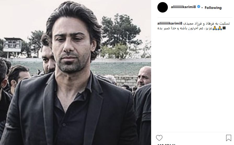 تسلیت اینستاگرامی علی کریمی به فرهاد مجیدی