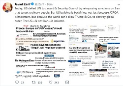وزیر امور خارجه کشورمان در توییتی، به اعمال مجدد تحریم‌های ضدایرانی دونالد ترامپ واکنش نشان داد.