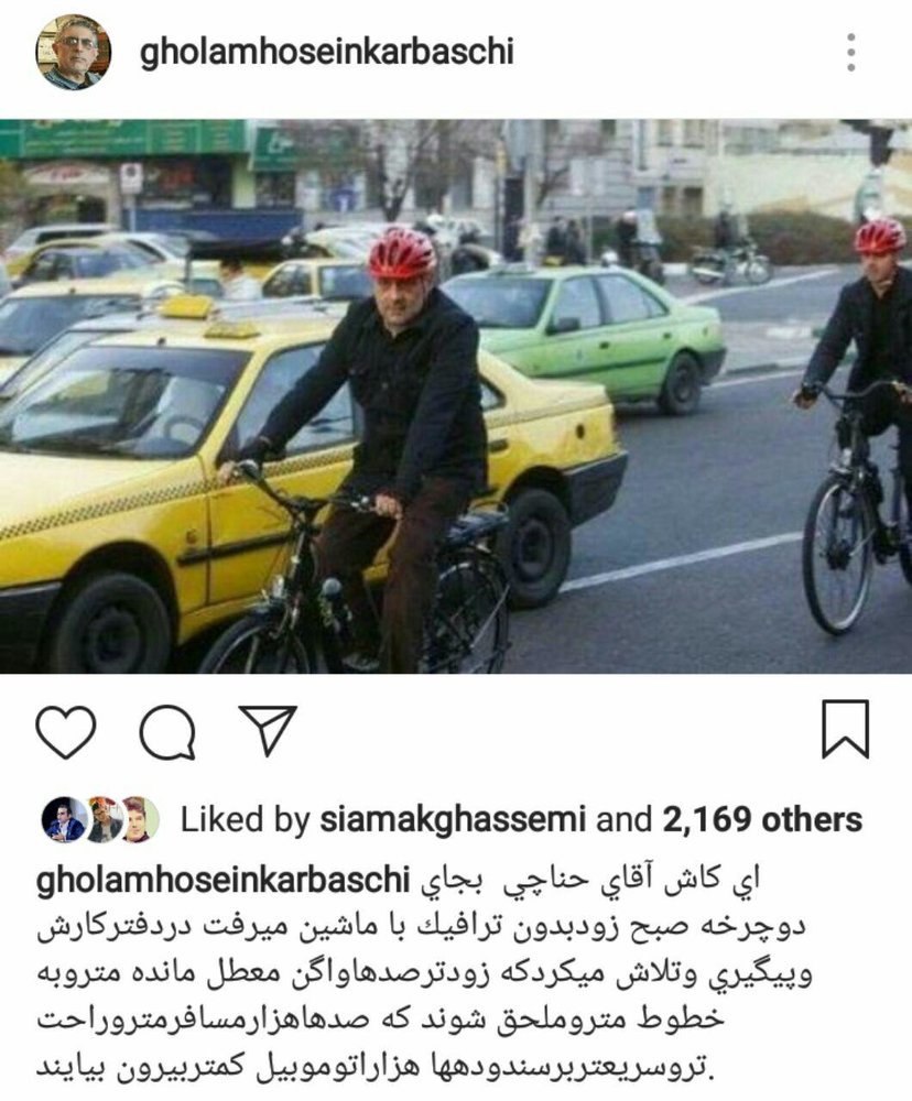 انتقاد کرباسچی از دوچرخه سواری حناچی (عکس)
