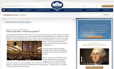 به گزارش «شیعه نیوز »  وبلاگ کاخ سفید (وابسته به سایت رسمی آن) ، روز پنج شنبه 5 فوریه به سخنرانی  باراک حسین اوباما رییس جمهور جدید امریکا پرداخته است.
