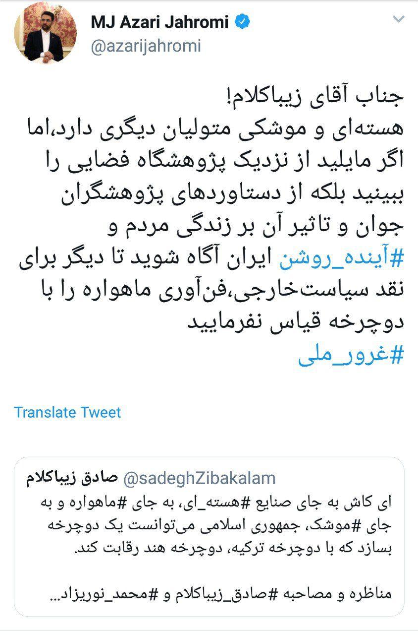 پاسخ وزیر ارتباطات به زیباکلام