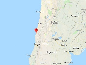 سازمان زمین شناسی ایالات متحده کانون این زمین لرزه را 15.6 کیلومتری جنوب-جنوب غربی ساحل شهر کوکیمبو در مرکز شیلی در عمق 53 کیلومتری گزارش کرد.