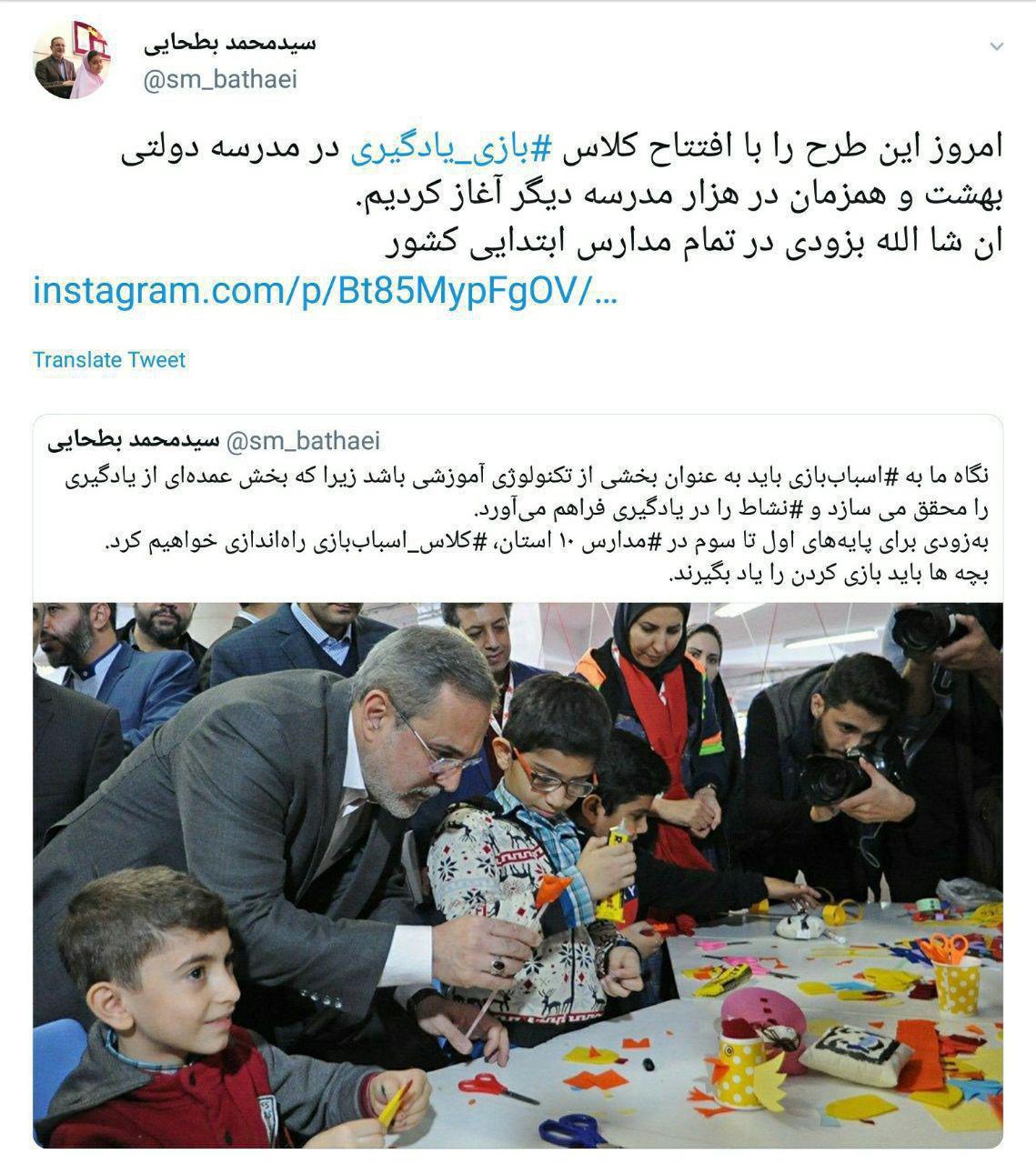 پست توئیتری وزیر آموزش و پرورش درباره آغاز طرح ملی بازی-یادگیری (عکس)