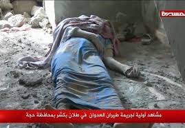 به گزارش تسنیم، بر اثر حملات جنگنده‌های ائتلاف متجاوز سعودی به منازل شهروندان یمنی در "طلان" در بخش "کشر" واقع در استان حجه دست کم 20 زن و کودک یمنی به شهادت رسیدند.