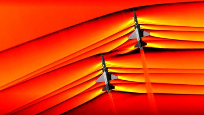 سازمان هوافضای آمریکا، ناسا، تعدادی عکس تاریخی از لحظهای که دو هواپیمای مافوق صوت، دیوار صوتی را میشکنند، گرفته است.