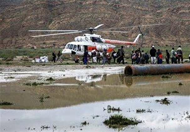 بالگردهای هلال احمر و ارتش و سپاه اقلام را به مناطق سیل‌زده رساندند