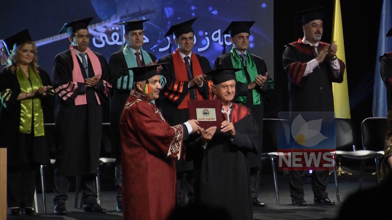 به گزارش عصر ایران به نقل از کردپرس، دانشگاه سلیمانیه اقلیم کردستان، طی مراسمی رسمی و با حضور نایب رئیس پارلمان کردستان، وزیر آموزش عالی، استاندار سلیمانیه، رئیس دانشگاه سلیمانیه و شخصیت های هنری، فرهنگی و دانشگاهی اقلیم، به پاس سال ها خدمات ارزنده هنرمند برجسته کُرد، مظهر خالقی به هنر، موسیقی و فرهنگ کُردی، دکترای افتخاری این دانشگاه را به وی اعطا کرد.
