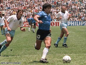 1.ديگو مارادونا ؛ديدار آرژانتين و انگلستان در يك چهارم جام جهاني 1986. وي در اين بازي گل ديگري نيز با دست به ثمر رساند.