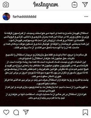 فرهاد مجیدی سرمربی تیم فوتبال استقلال با انتشار پستی در اینستاگرامش نوشت: