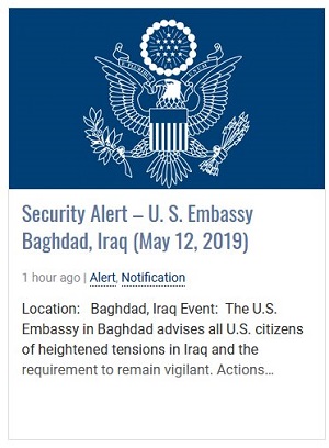 سفارت آمریکا در عراق به تمامی شهروندان آمریکایی توصیه کرده که با توجه به «بالا گرفتن تنشها» هوشیارانه عمل کنند.
