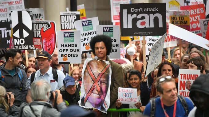 هم‌زمان با افزایش تنش‌ها در منطقه خلیج‌فارس، ائتلاف توقف جنگ انگلیس روز جمعه با صدور بیانیه‌ای از مخالفان سیاست‌های ضد ایرانی آمریکا دعوت کرد تا مقابل دفتر نخست‌وزیری انگلیس دست به تظاهرات زده و مخالفت خود را باسیاست‌های دونالد ترامپ اعلام کنند.