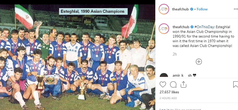 به گزارش  فارس، کنفدراسیون فوتبال آسیا مثل سال های گذشته سالگرد دومین قهرمانی استقلال در آسیا را در صفحه اینستاگرامش تبریک گفت.